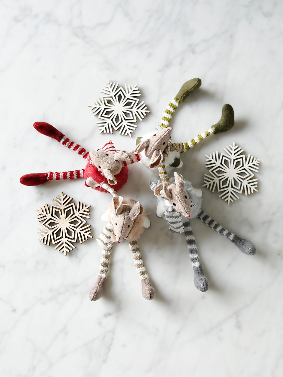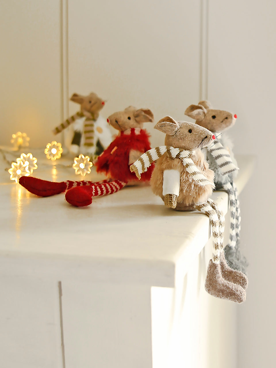 Avec leurs gilets boutonnés et leurs pattes rayées, ces souris aux couleurs chatoyantes sont idéales pour décorer étagères et rebords de fenêtres.